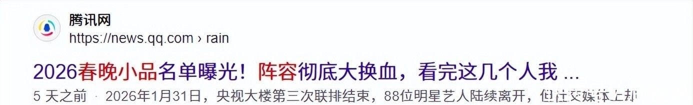 3.腾讯网:2026春晚小品名单曝光!阵容彻底大换血,看完这几个人我惊呆了